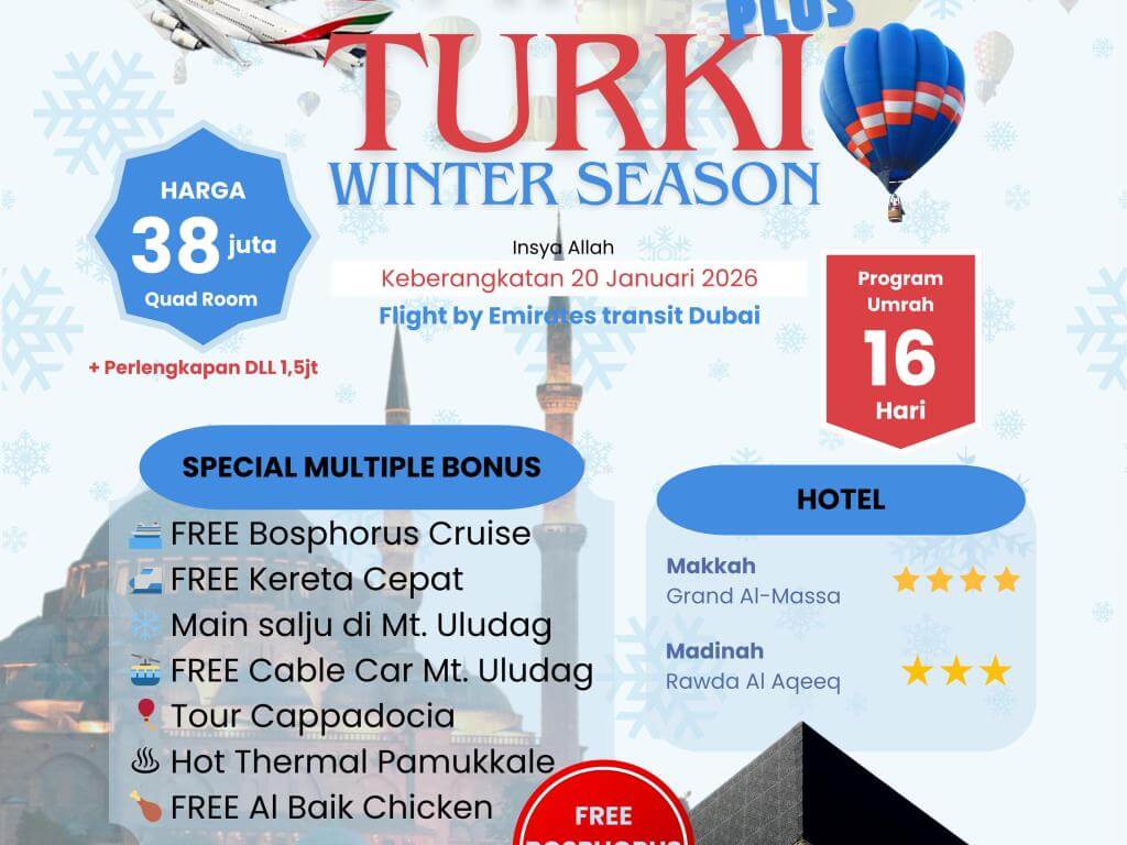 - Perlengkapan : Hand Bag Travel, koper, bagasi, kain ihram/mukena, buku manasik, syal, dan manasik umrah